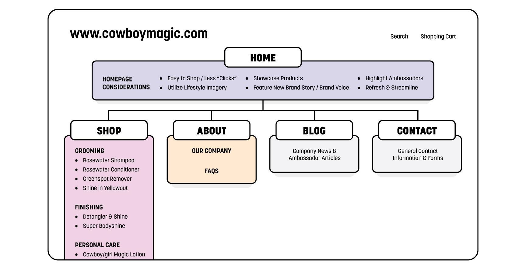By understanding the brand’s unique value, audience needs, and business goals, we established a vision for the new site’s purpose and impact. Having a solid strategy and brand position in place ensured that the website would not only look great but also effectively communicate Cowboy Magic’s message, enhance the user experience, and drive sales.